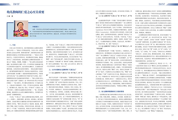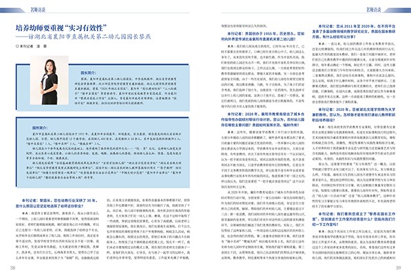 P01 陈 栋 《家庭教育促进法》点亮家庭教育蝶变之路 P09 曹婷婷 幼儿园如何科学开展性教育 P23 马 雯 热身运动是幼儿体育运动的开场白 P36 姜 勇 幼儿教师的仁爱之心至关重要 P38 凌 蓉 培养幼师要重视“实习有效性” ——访湖北省襄阳市直属机关幼儿园园长黎燕